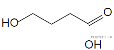 2. Кислота имеет неразветвленный скелет. Следовательно, это гидроксипроизводное масляной кислоты. 2-гидрокси- и 3-гидрокси-масляная кислота имеют асимметрический атом углерода и оптически активны, следовательно, искомая кислота — 4-гидрокси-масляная (4-гидроксибутановая):
